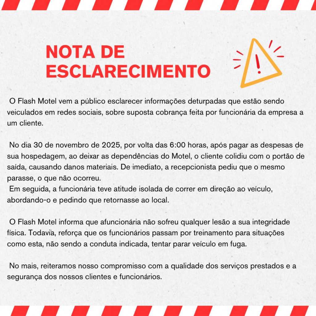 O motel se manifestou sobre o caso e afirmou que a funcionária está bem e não sofreu nenhum prejuízo. A direção também disse que a atitude da colaboradora não faz parte do treinamento e pediu desculpas pelo transtorno: