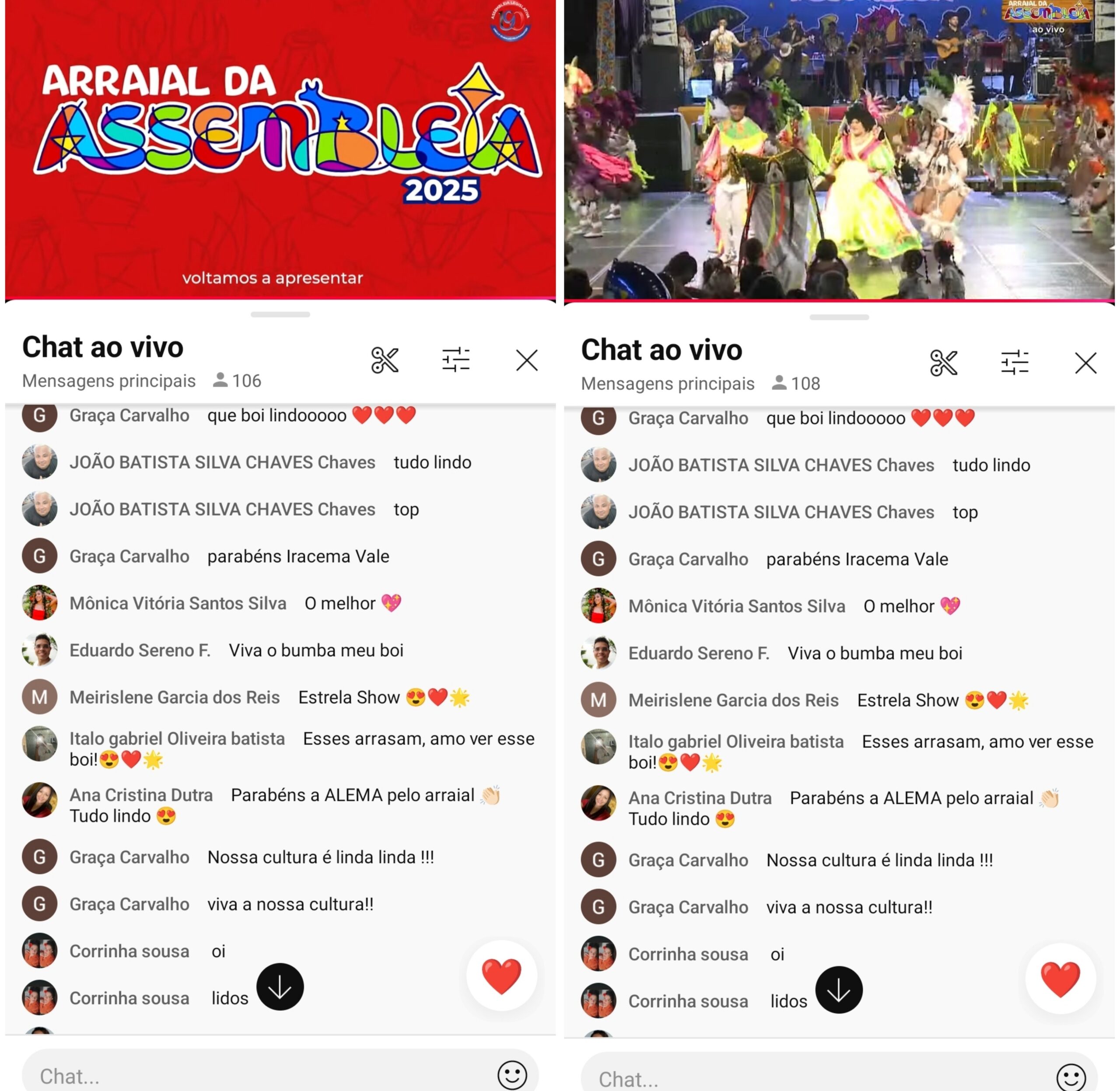 Nos comentários das transmissões, o sentimento é de orgulho, emoção e gratidão. Marcia Rosana Brito foi direta ao elogiar: “Transmissão maravilhosa” e complementou em outro momento: “É o melhor São João do Brasil com uma diversidade que é só do Maranhão. Viva nossa Cultura Popular!”
